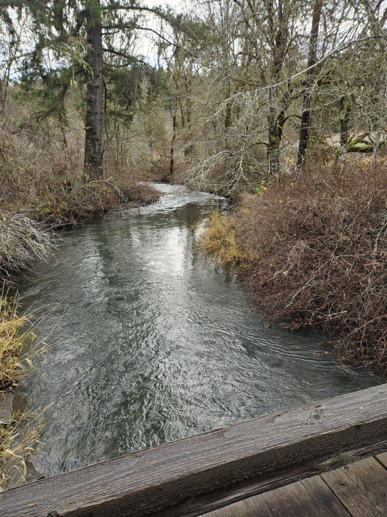 The creek is high, but not flooding (yet)