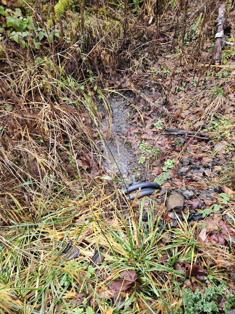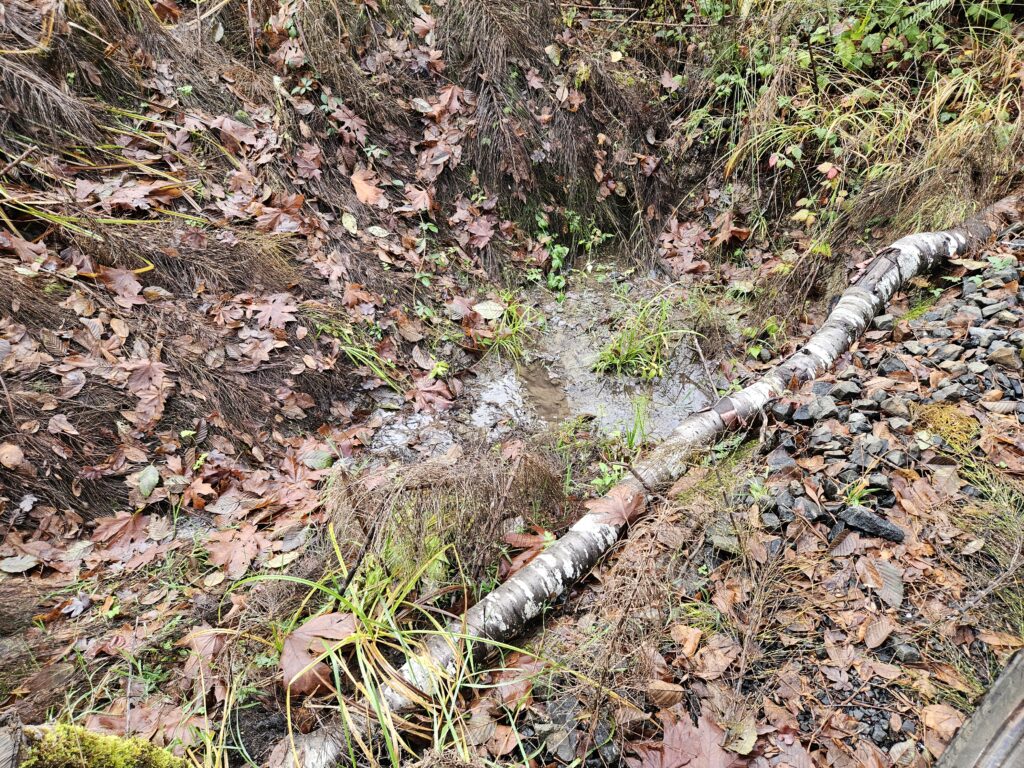 One of the three gutters installed last year is doing its job (as are the other two).